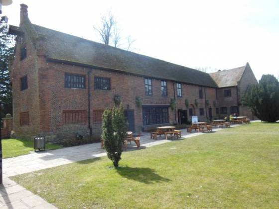 After a short walk through the park we saw Tudor Barn standing in the middle of the green; a large, quite foreboding and impressive building. There was a green lawn area outside, with a number of benches and tables – this would be pleasant in the spring and summer. We entered Tudor Barn itself, and were met with a bar and seating area. Ordered a pint of Holsten Vier (£3.30) for me, and a soda water for Claire (£1.00 – John William, our baby, didn’t have anything ;-)).